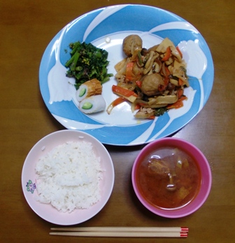 ダイエットの仕事に携わり食事指導をさせていただいており、炭水化物・脂質ばかりにならないようバランスのよい食事を推奨しています。決して自慢できるものではありませんが、我が家(6人家族)では毎晩こんな質素な夕食を食べています。
